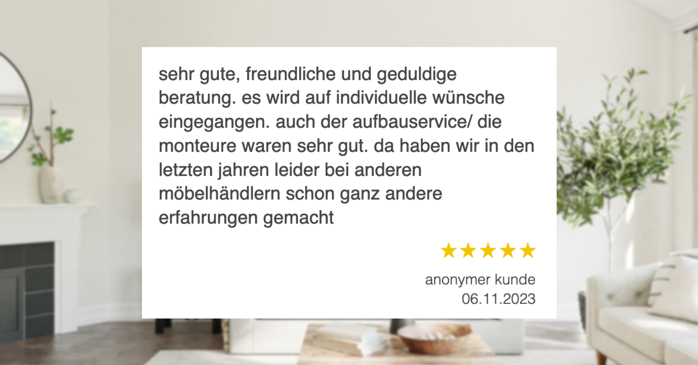 Möbel Neuhaus besteht seit 1900 und ist damit mehr als 120 Jahre erfahrener Einrichtungspartner in Werne für die Region. Auf rund 2.000 m2 finden Kunden des Möbelhauses alles, was sie für ihr schönes und gut eingerichtetes Zuhause benötigen. Das Team mit 21 Mitarbeitenden hat den Anspruch, seinen Kunden stets eine gute Beratung und den besten Service inkl. Lieferung und Montage sowie Beratung vor Ort zu bieten. Bereits in der vierten Generation ist das Familienunternehmen erfolgreich und steht für Qualität, Leistung und faire Preise. Das wissen die Kunden zu schätzen, wie die erneute Auszeichnung mit dem Service-Check Siegel bestätigt.